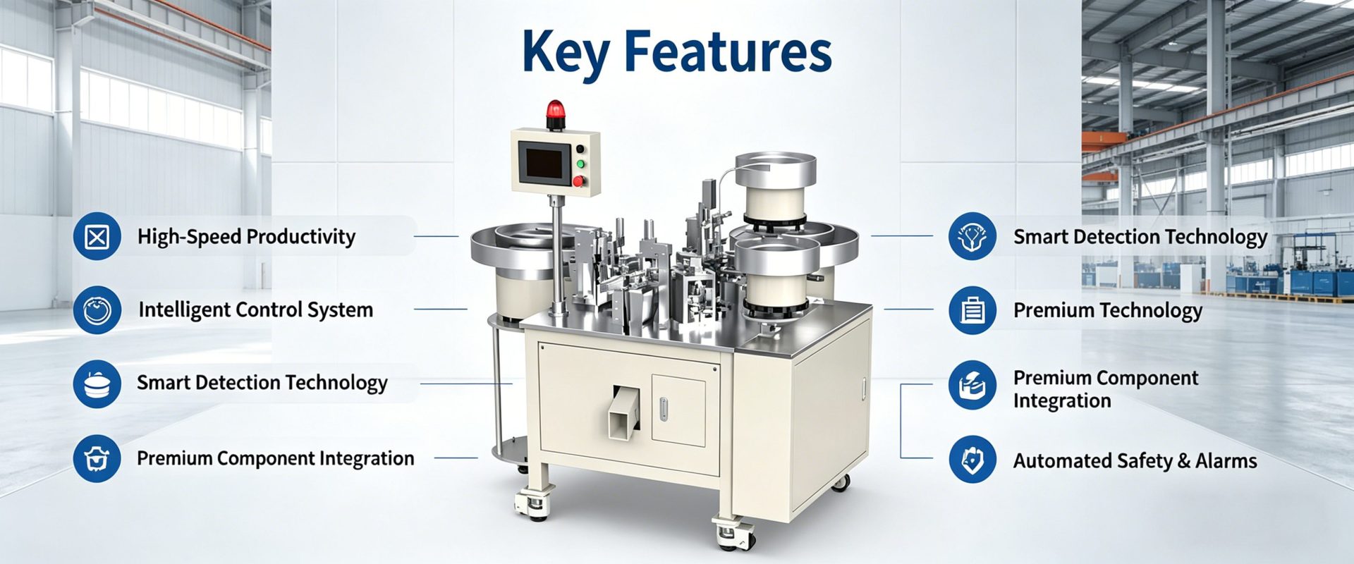 Fully Automated Integration: Depending on your material form, we perfectly match the ideal feeding system—such as fully automatic vibrating bowls, step-lift feeders, or seamless robotic arm integration—to achieve true unmanned, high-speed operation.