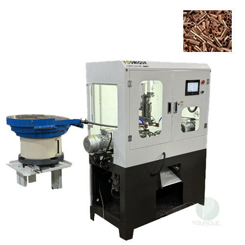 What sets this particular model apart is its integration with a high-capacity vibratory bowl feeder and a fully enclosed safety cabin. This design is highly optimized for mass-producing small copper, aluminum, or steel tubes (such as electrical ferrules, spacer tubes, and micro-cylinders). By automating the entire feeding, clamping, and cutting process, the Automatic Double-head Chamfering Machine ensures every piece meets the strict tolerances required in modern precision machining, ultimately delivering a perfectly smooth, burr-free finish that is ready for assembly or welding.